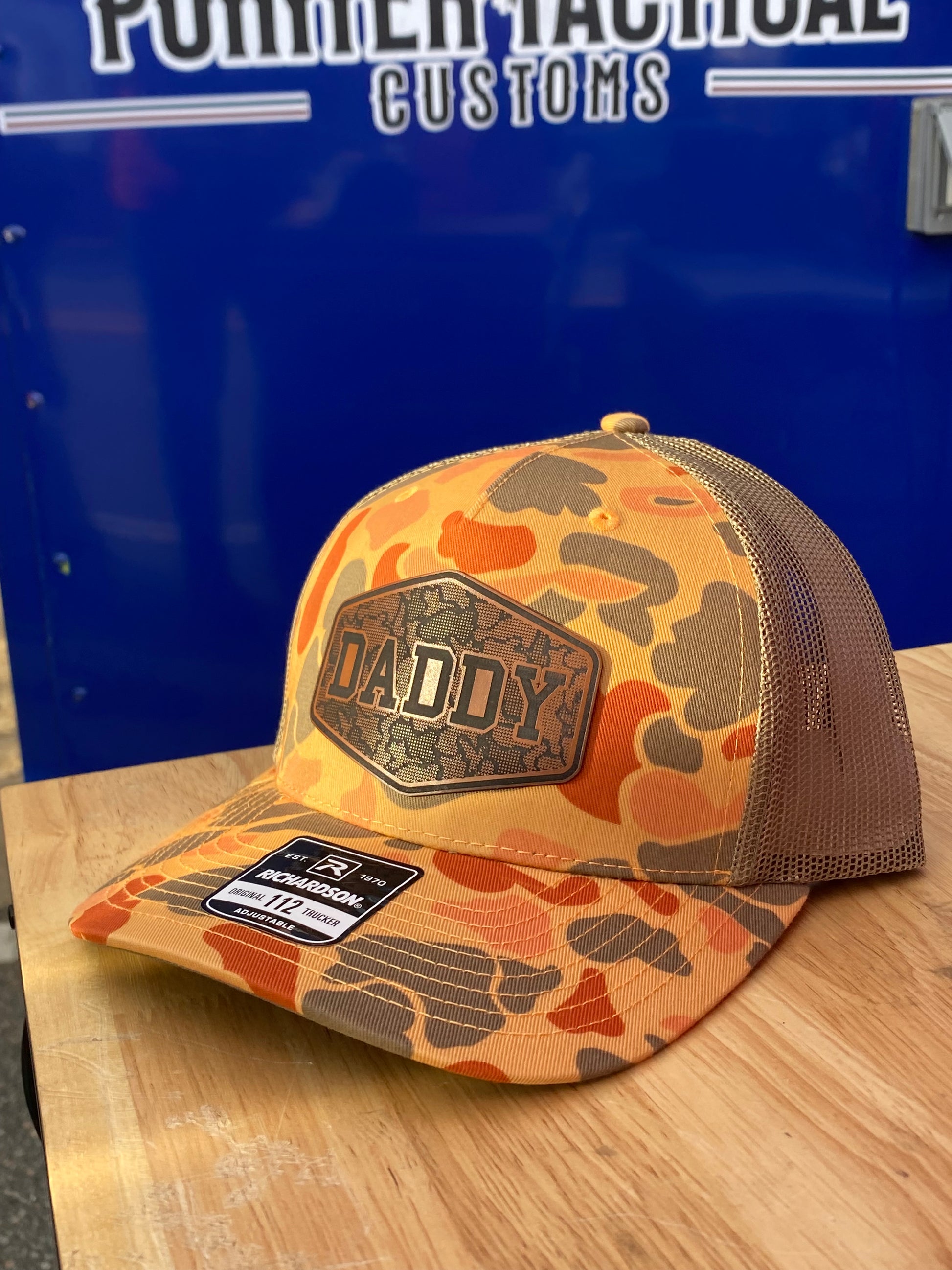 DADDY Leather Patch Hat – Richardson 112 | Retro Camo Trucker Cap | Pointer Tactical Customs