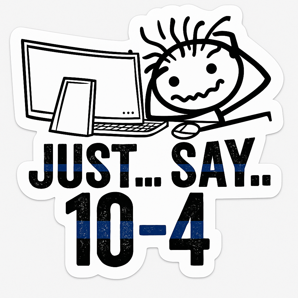 The “Just Say 10-4” sticker is for every dispatcher, radio operator, or comms officer who’s had to sit through a three-minute monologue just to confirm: “Copy.” Whether you're behind the headset or behind the wheel, this 2.5" matte vinyl sticker is a polite(ish) reminder to keep it short and sweet.