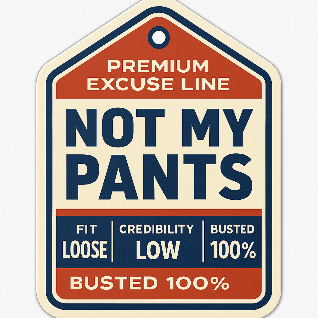 Stick it on your cruiser, evidence locker, report clipboard, or cooler. It’s the premium excuse we all know, printed on a sticker that holds up better than the story it mocks.