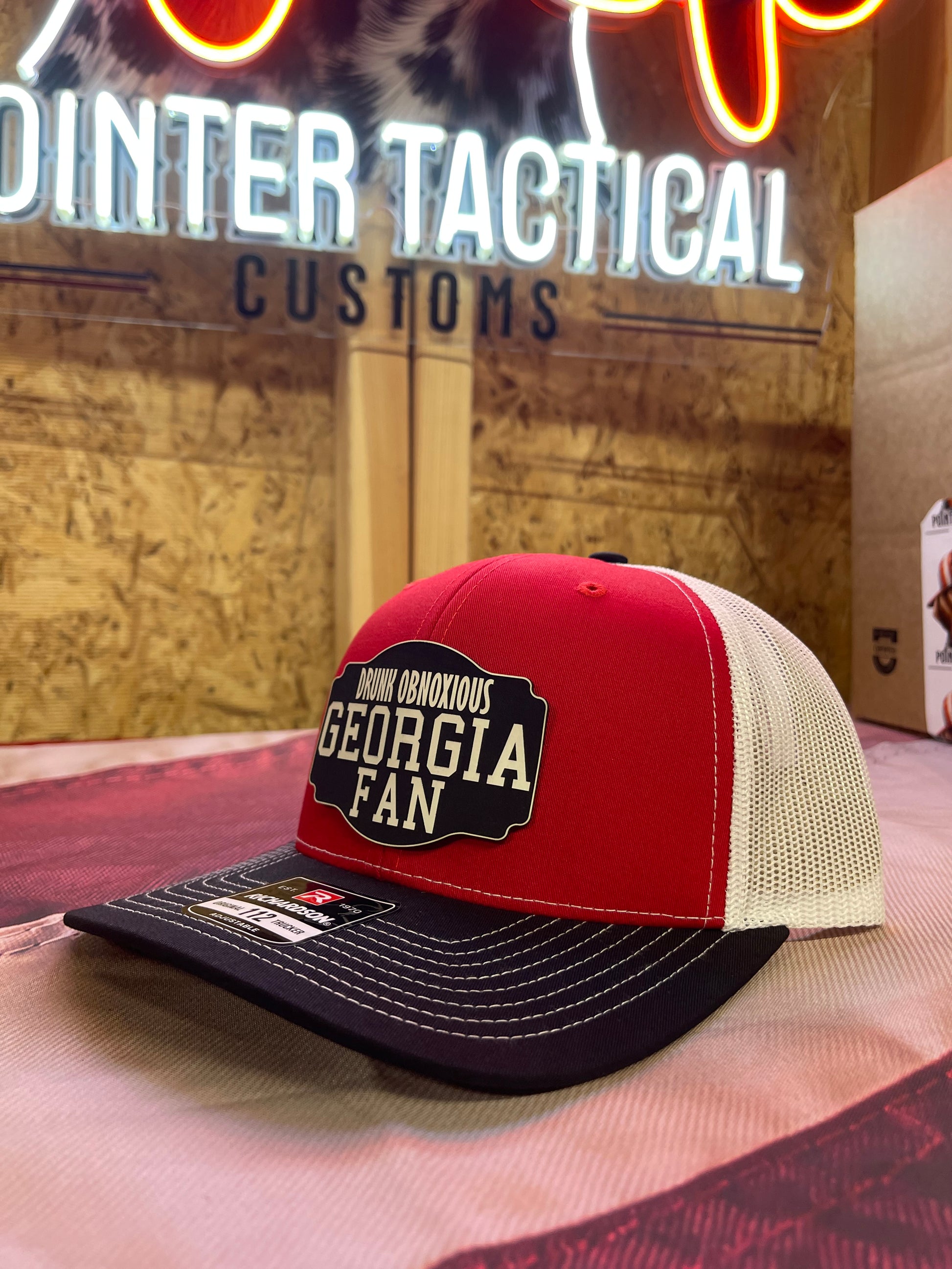 Designed in a Red-Black-White blackout finish, this patch pairs perfectly with Richardson 112 hats, jackets, or custom game day gear. Whether you’re repping the UGA Dawgs at Sanford Stadium, clashing with Alabama fans, or just showing off your love for Georgia football, this UGA hat patch is guaranteed to get attention.