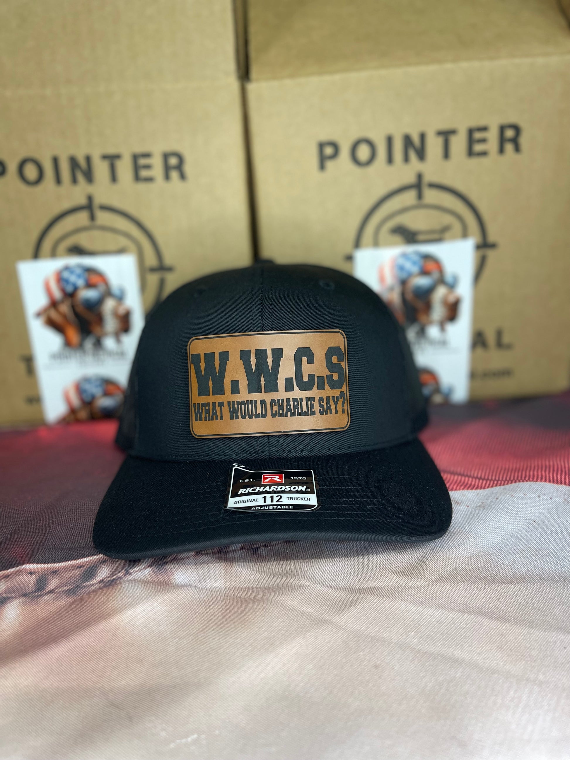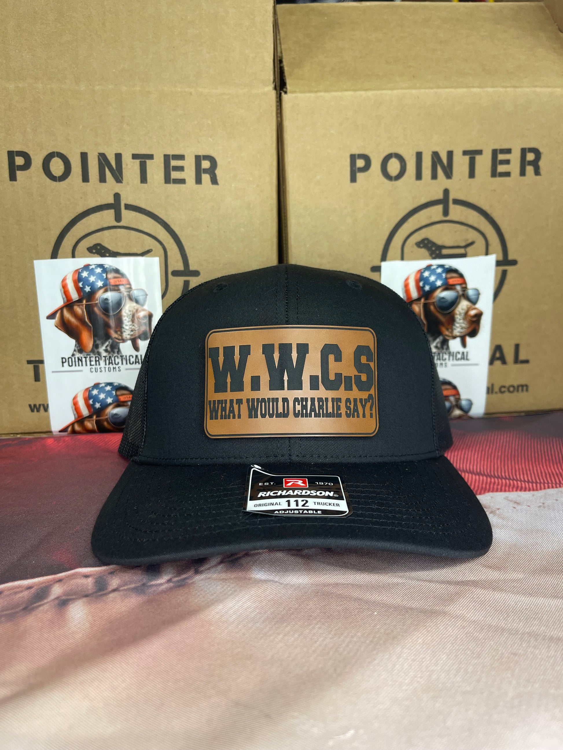 W.W.C.S. – What Would Charlie Say? Leather Patch Trucker Hat (Richardson 112)